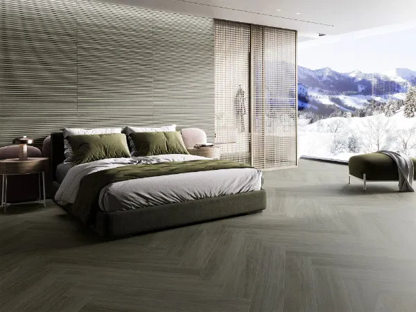 Large format rectified porcelain tiles designed to imitate wooden panelling. Suitable for use on both wall and floor.